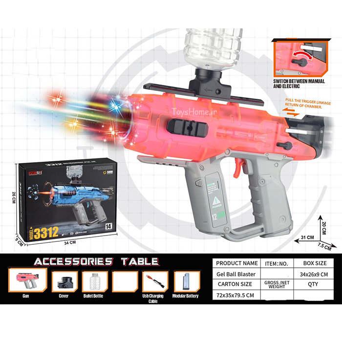 تفنگ تیر ژله ای شارژی چراغدار آیتم 3312