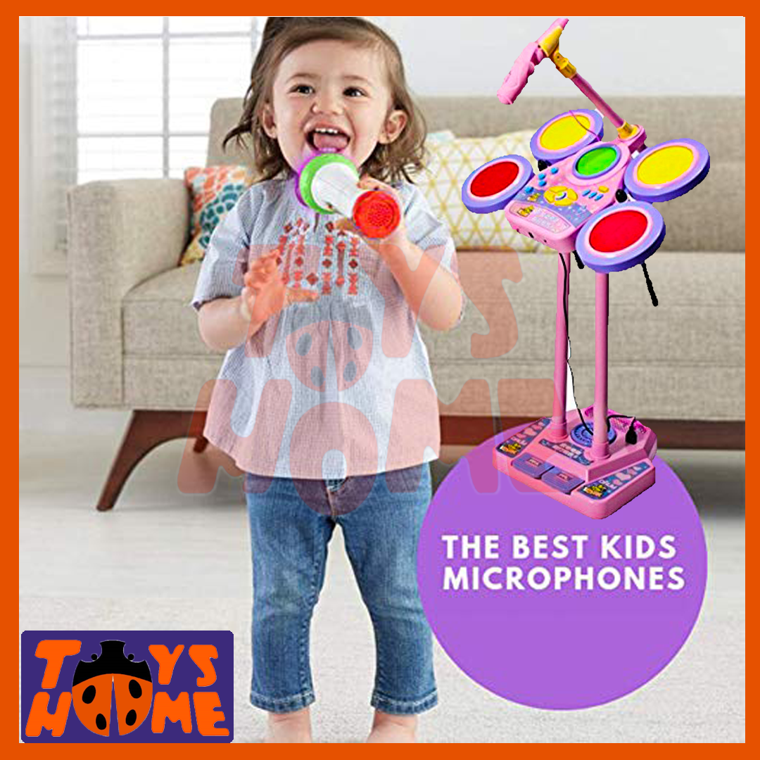 میکروفون پایه دار دارای ۵ درام مستقل ،چراغ واقعی برای استفاده در محیط های کم نور،دکمه تشویق،موزیک های پیش فرض و آواز خواندن همزمان با آهنگ