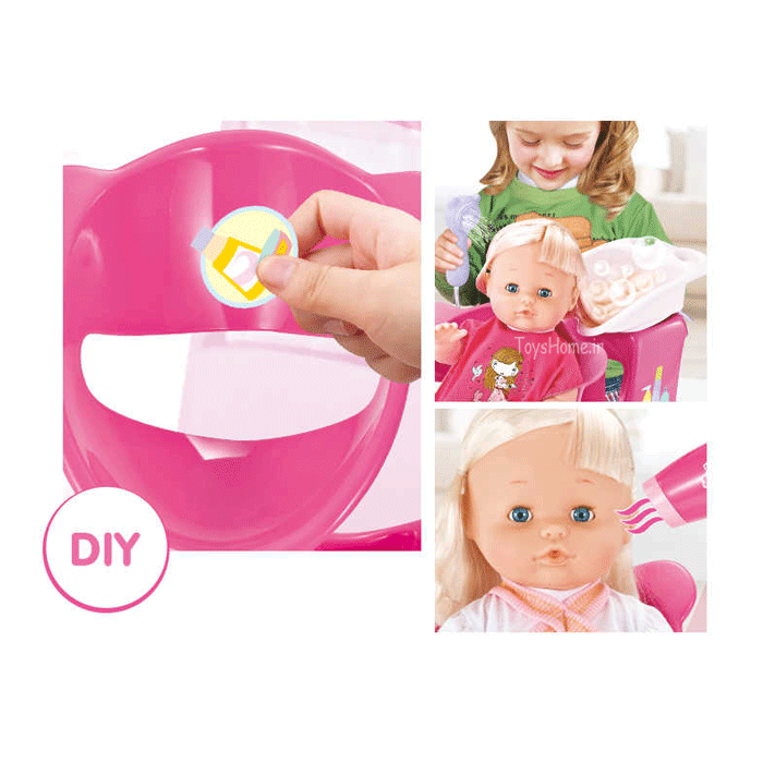 عروسک بیبی بورن دارای صندلی آرایشگری و دوش آب جهت شست و شوی سر .