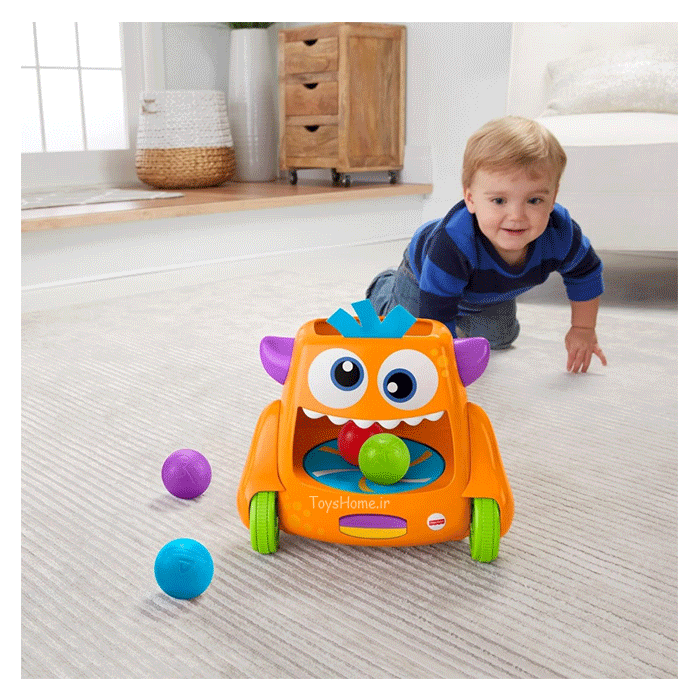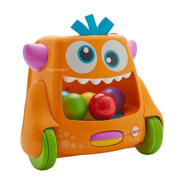 ،تشویق به حرکت میکند.شامل ۱۵ موزیک و دارای ۲ درجه صدا بوده که حس شنوایی کودک آسیب نبیند.فیشر پرایس مدل هیولا ، دارای ۵ عدد توپ رنگی بزرگ می باشد.