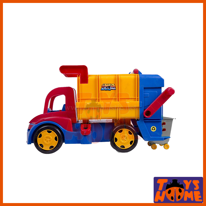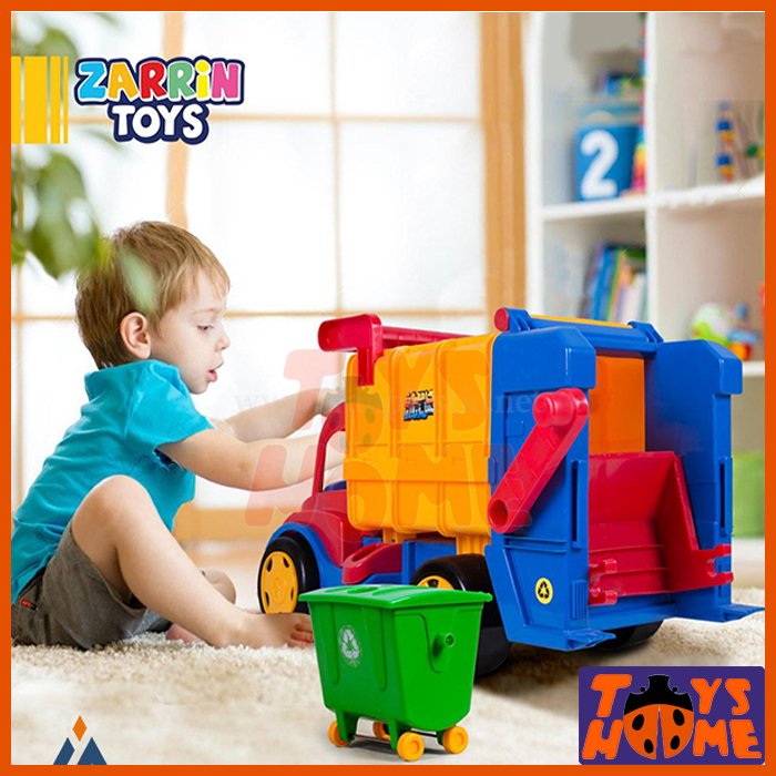 ماشین اسباب بازی حمل زباله با قابلیت باز شدن درب عقب جهت تخلیه بار دارد همچنین شامل
