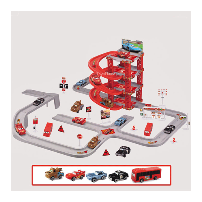| محتویات بسته بندی | شامل ۵۶ قطعه ، ۵ عدد ماشین به ابعاد ۵ سانتیمتر |