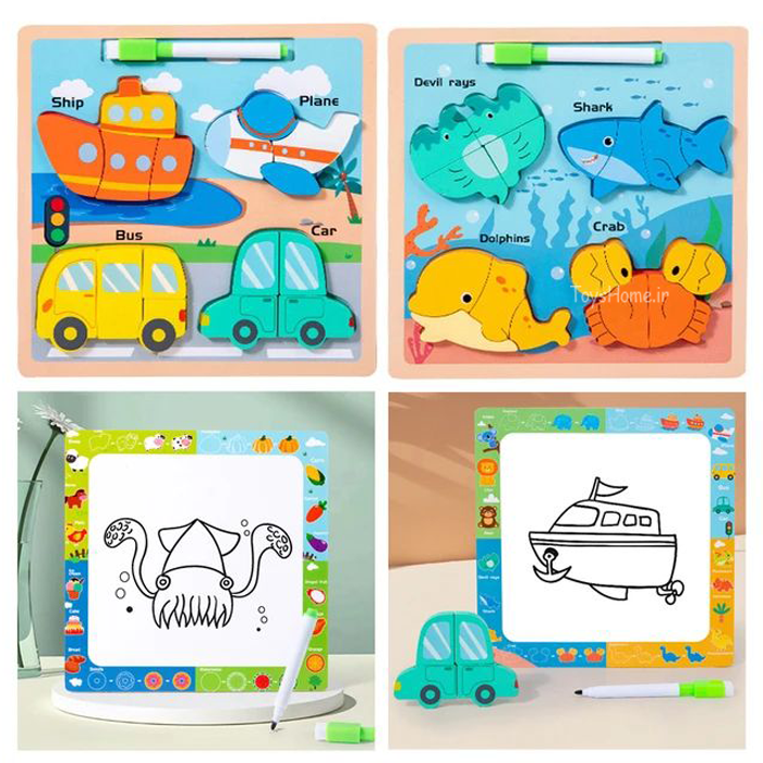 پازل چوبی برجسته قطعه بزرگ با کاربرد تخته وایتبورد برای کشیدن نقاشی