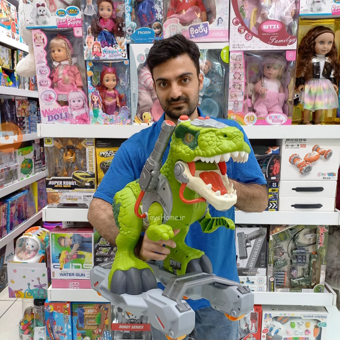 دهان دایناسور توسط 2 اهرم به صورت دستی باز میشود و بخار آب پخش میشود.